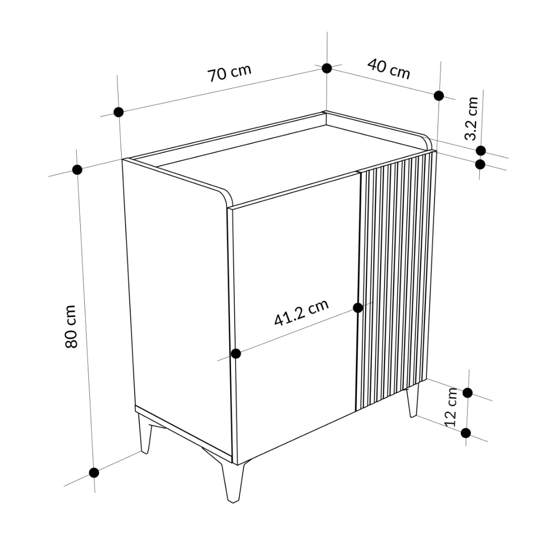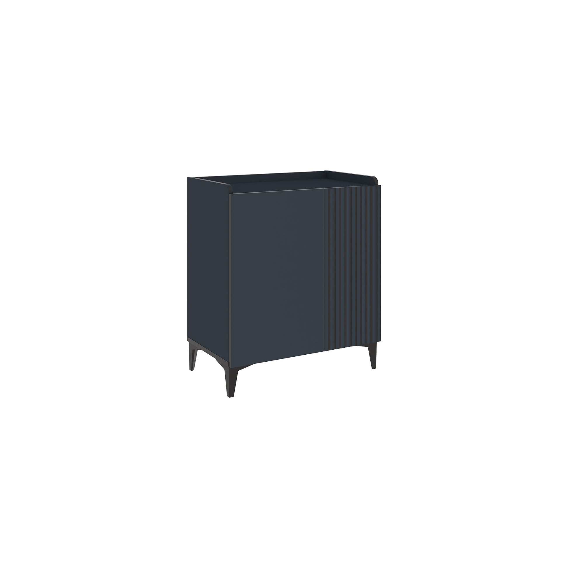 Add a touch of modern sophistication to your home with the Deep Blue Multipurpose Cabinet. Featuring sleek vertical laser-cut detailing, black metal legs, and a matt finish, this compact unit blends design and practicality.